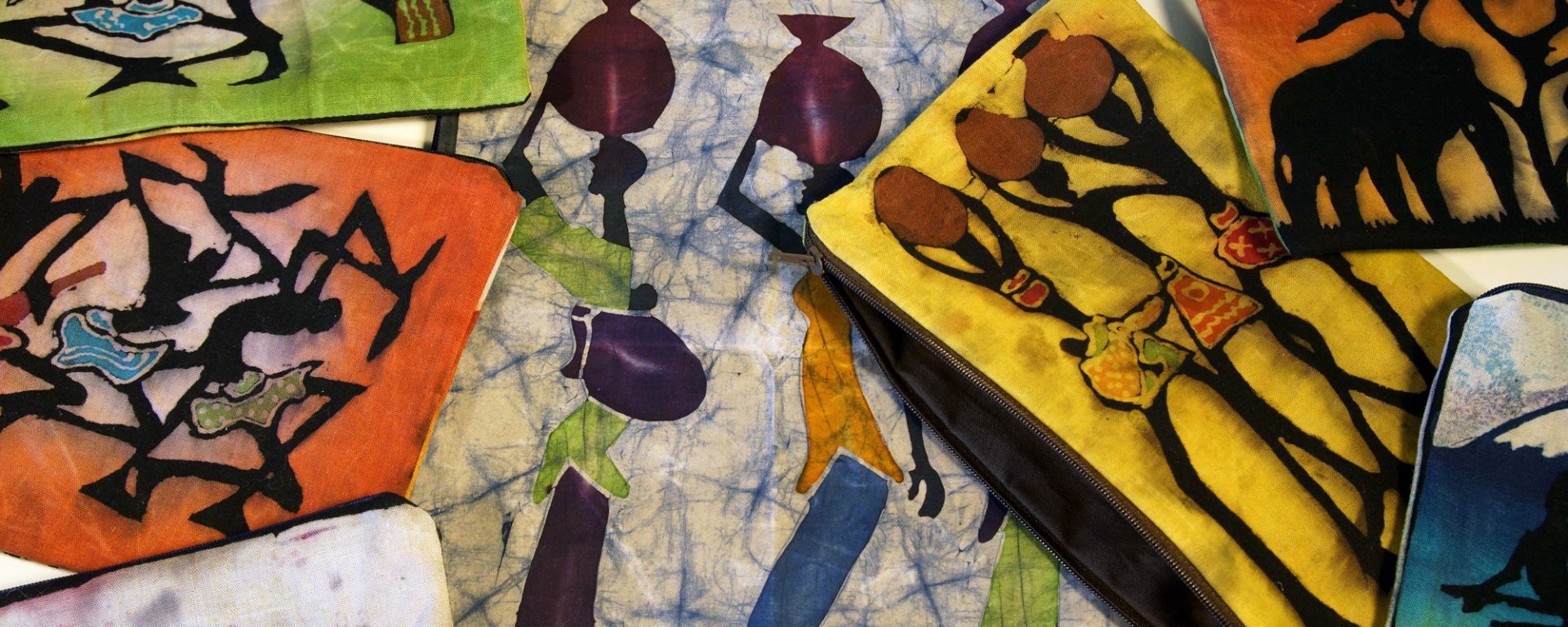 Traditionelle Batik-Bilder aus Kenia und Südafrika werden zu farbenfrohen Taschen.