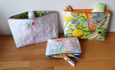 - Sie schicken mir zwei Zeichnungen ihrer Liebsten in möglichst passender Größe per Post. Eine Zeichnung ist für die Vorderseite und eine für die Rückseite der Tasche. (Achtung: Bitte nur Zeichnungen auf Papier und keine auf Pappe oder Karton schicken. Bedenken Sie, dass bei der Verarbeitung ca. 1 cm am Rand des Bildes wegfällt.)