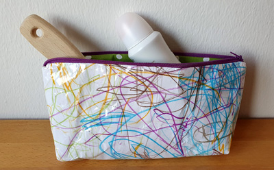 Alle Bilder werden von mir verstärkt und beschichtet. Dadurch sind die Taschen wasserabweisend und robust – für den Strand oder das Badezimmer also ideal. Sie bleiben trotzdem beweglich und können ohne Probleme in die Handtasche oder den vollen Koffer gequetscht werden.